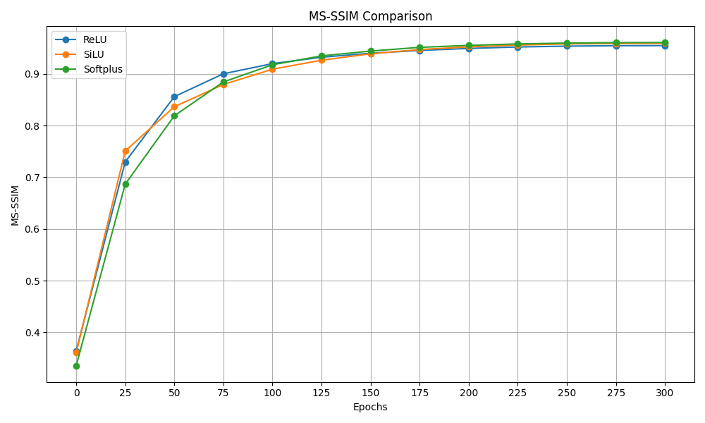 Figure 13: PSNR and MS-SSIM activation functions comparison