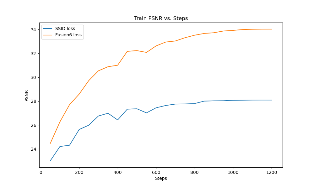 Figure 14: PSNR vs epochs (Steps) for SSID loss vs Fusion 6 loss.